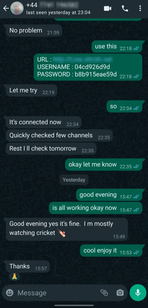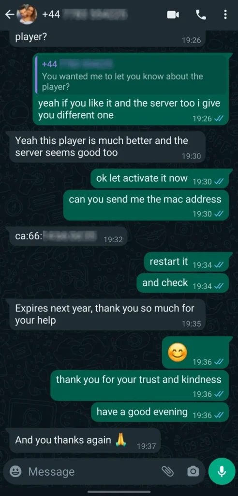 After payment via WhatsApp, your M3U link or login is sent within 5–10 minutes. Support 24/7 →